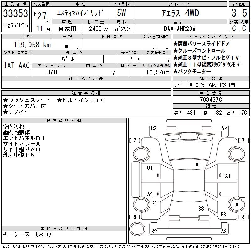 TOYOTA ESTIMA HYBRID - лот 33353