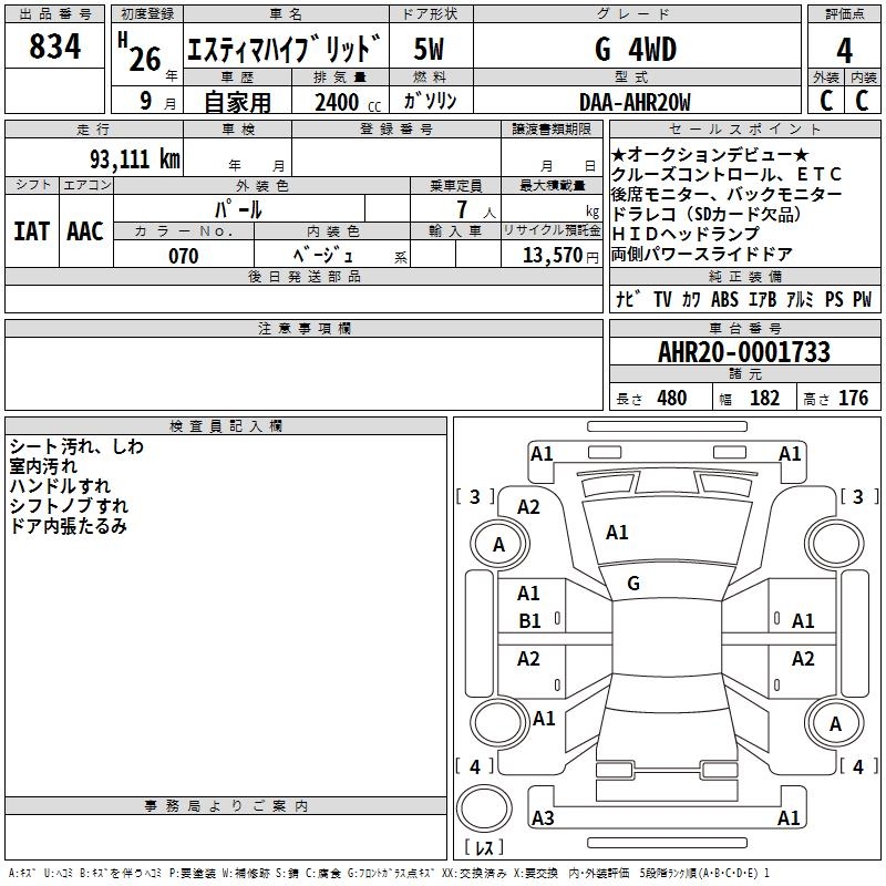 TOYOTA ESTIMA HYBRID - лот 834