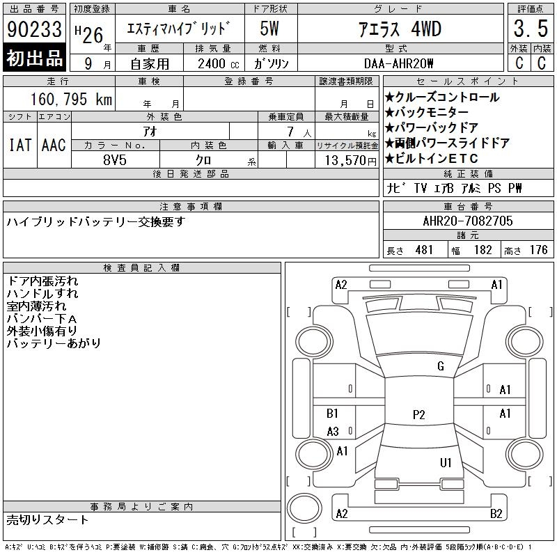 TOYOTA ESTIMA HYBRID - лот 90233