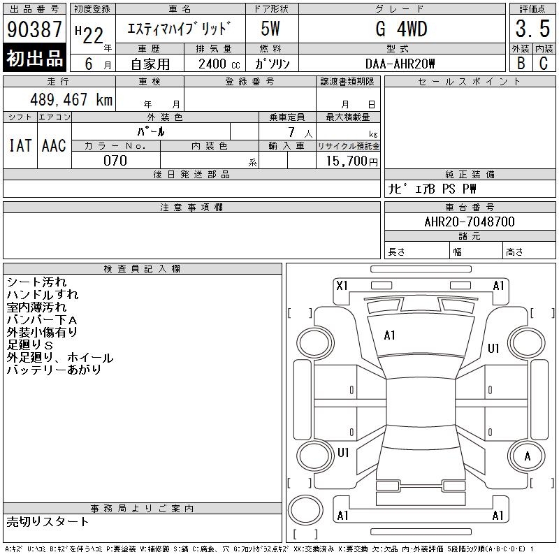 TOYOTA ESTIMA HYBRID - лот 90387
