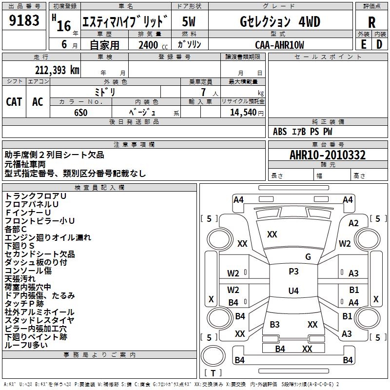 TOYOTA ESTIMA HYBRID - лот 9183