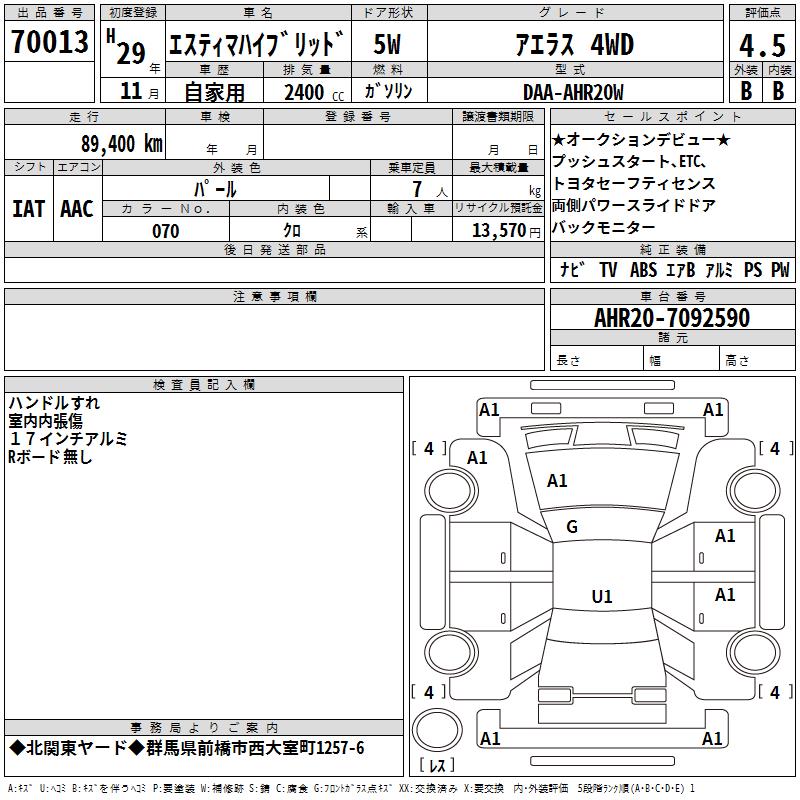 TOYOTA ESTIMA HYBRID - лот 70013