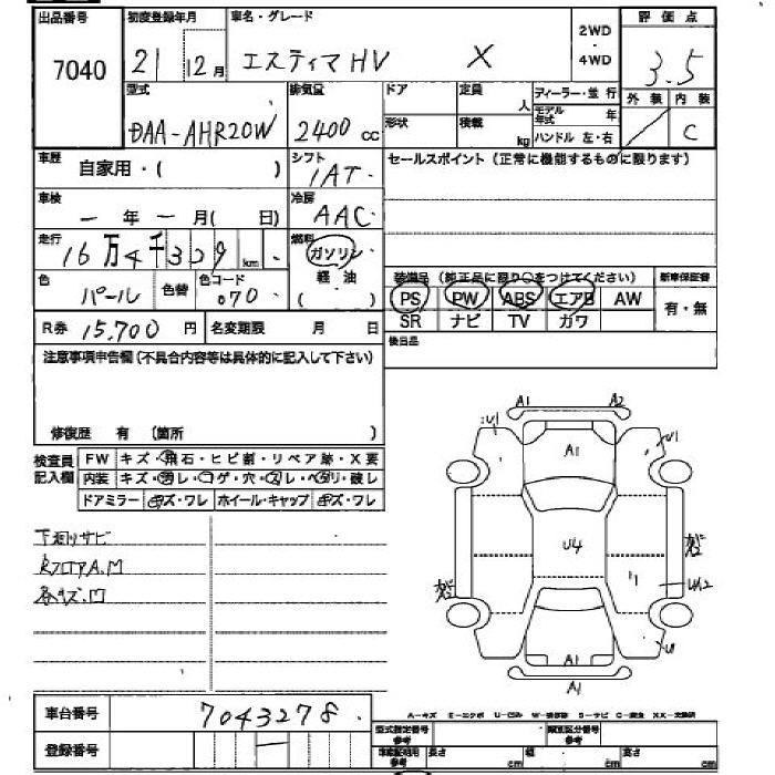 TOYOTA ESTIMA HYBRID - лот 7040