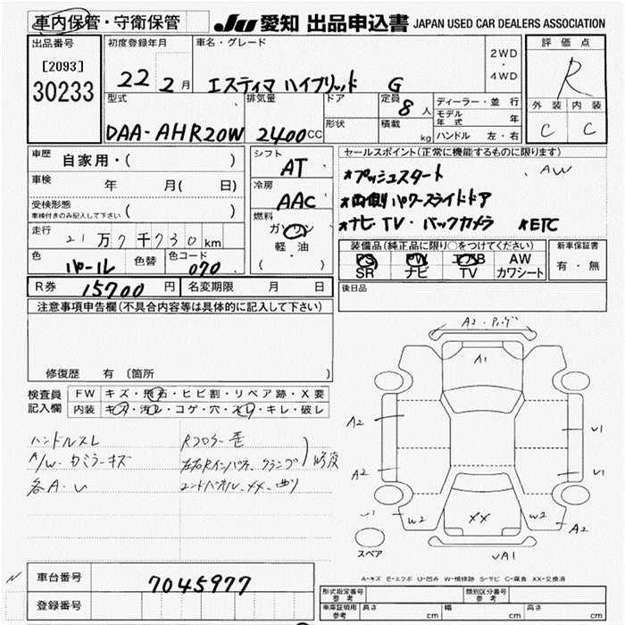 TOYOTA ESTIMA HYBRID - лот 30233