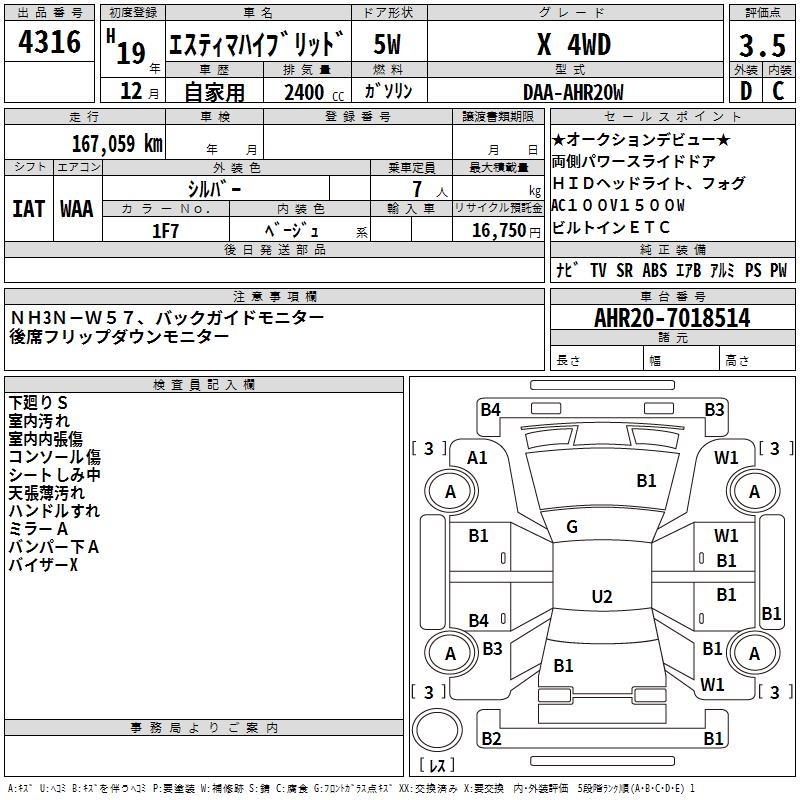 TOYOTA ESTIMA HYBRID - лот 4316