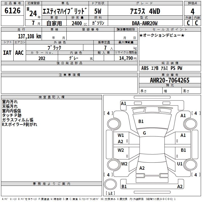 Все аукционы TOYOTA ESTIMA HYBRID