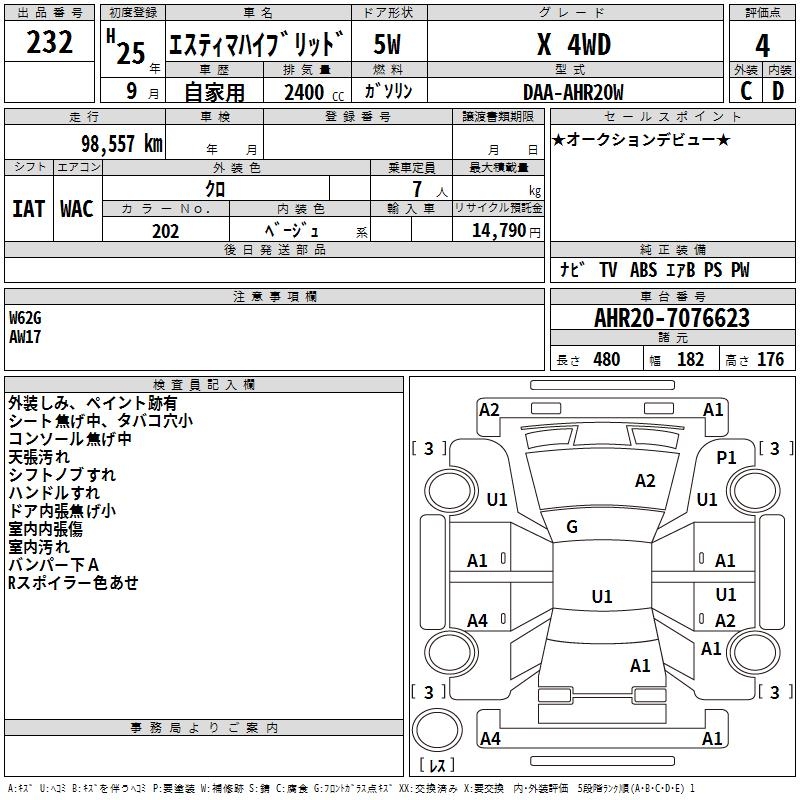 TOYOTA ESTIMA HYBRID X 4WD - лот 232