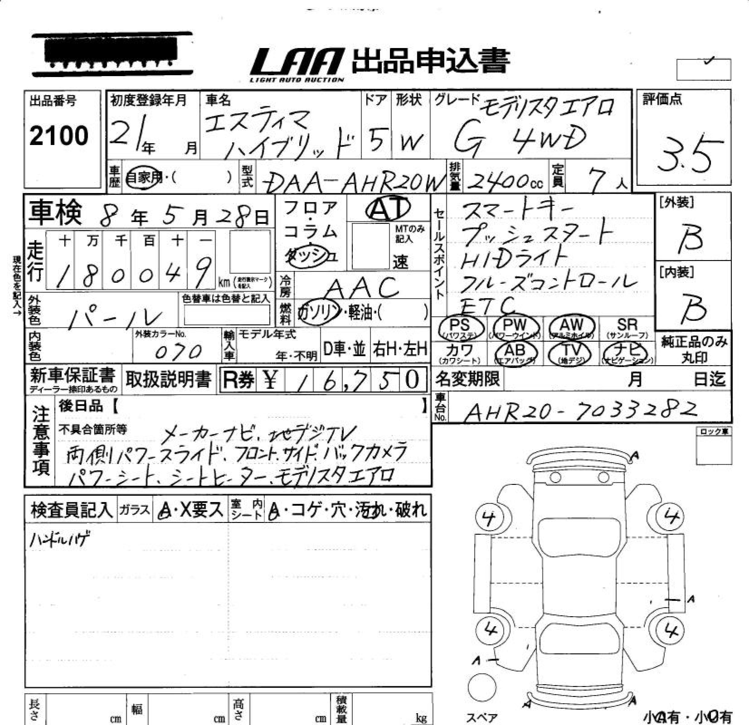 Все аукционы TOYOTA ESTIMA HYBRID