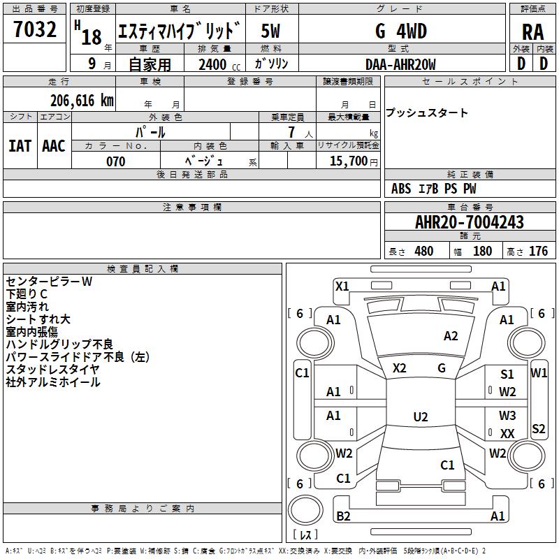 TOYOTA ESTIMA HYBRID G 4WD - лот 7032