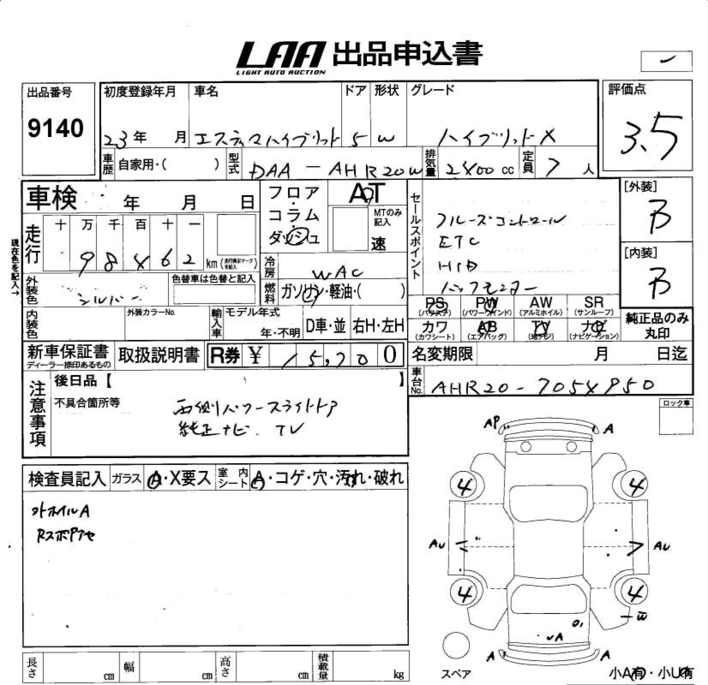 TOYOTA ESTIMA HYBRID X - лот 9140