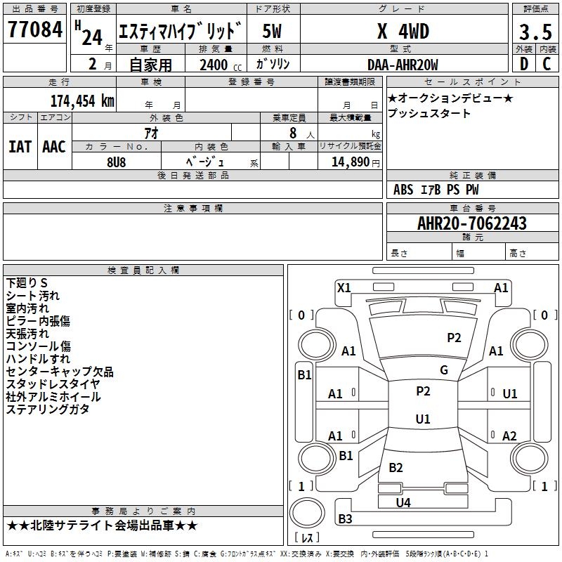 TOYOTA ESTIMA HYBRID X 4WD - лот 77084