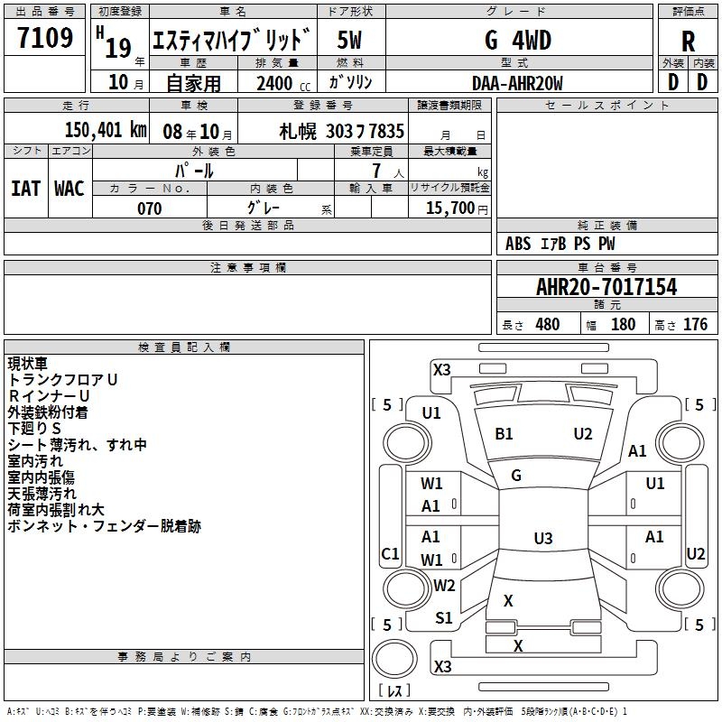 TOYOTA ESTIMA HYBRID G 4WD - лот 7109