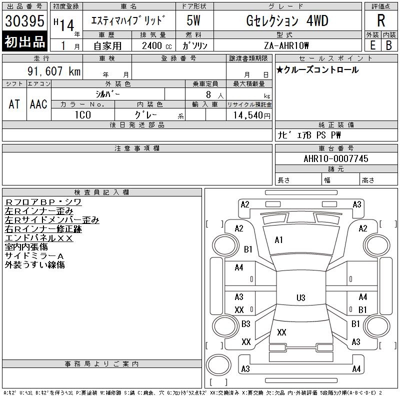 TOYOTA ESTIMA HYBRID G SELECTION 4WD - лот 30395
