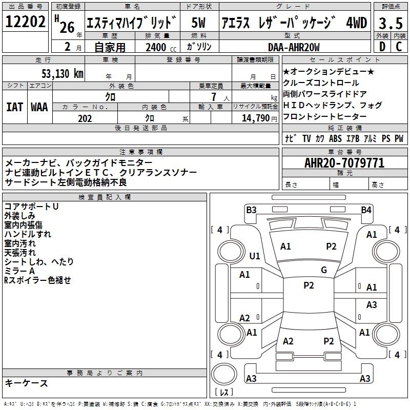 TOYOTA ESTIMA HYBRID AERAS LEATHER PACKAGE 4WD - лот 12202
