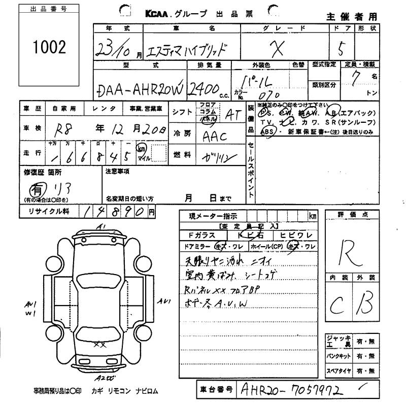 TOYOTA ESTIMA HYBRID X - лот 1002
