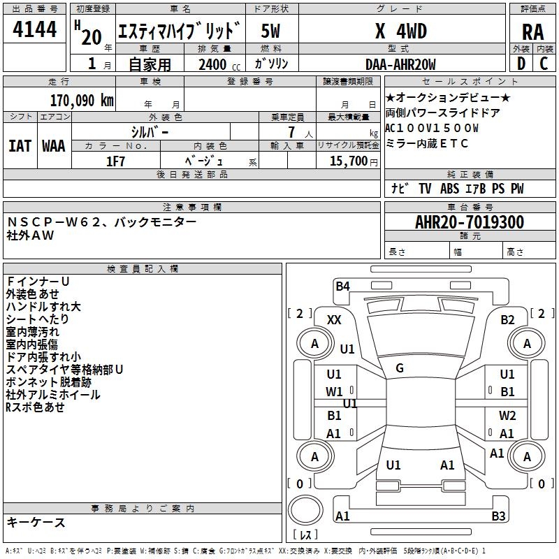 TOYOTA ESTIMA HYBRID X 4WD - лот 4144