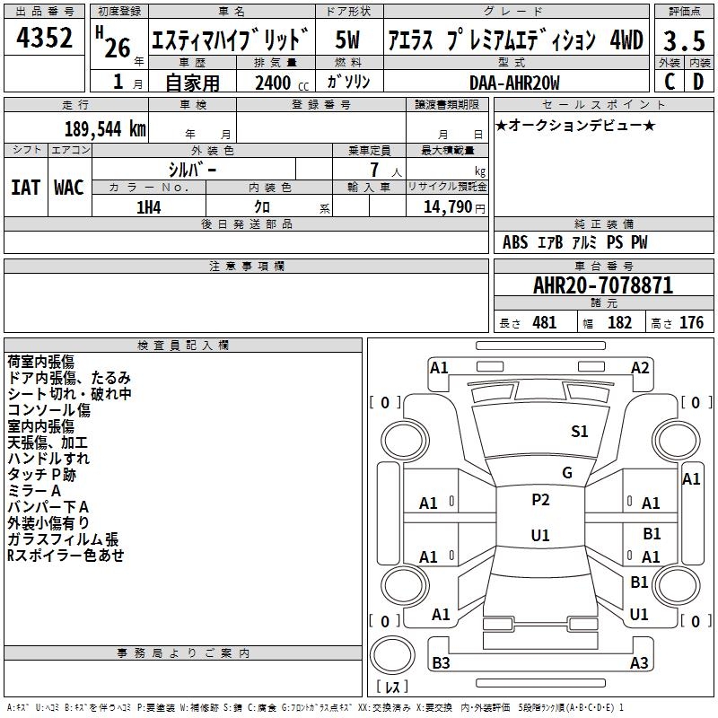 Все аукционы TOYOTA ESTIMA HYBRID