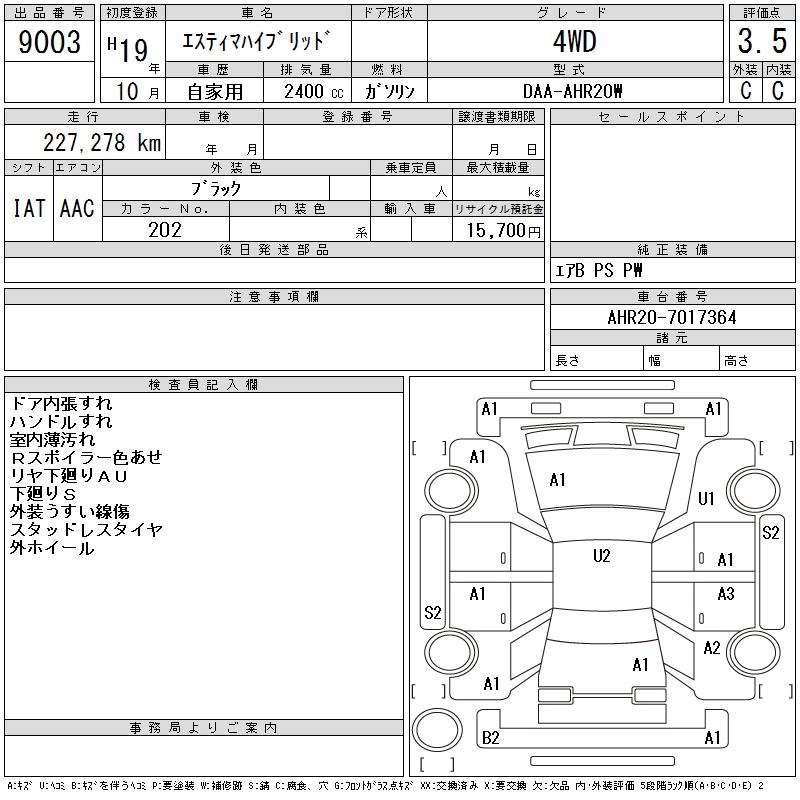 TOYOTA ESTIMA HYBRID 4WD - лот 9003