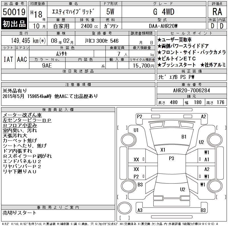 TOYOTA ESTIMA HYBRID G 4WD - лот 50019