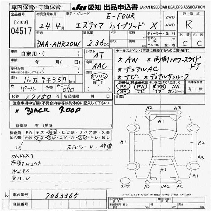 TOYOTA ESTIMA HYBRID X 4WD - лот 4517
