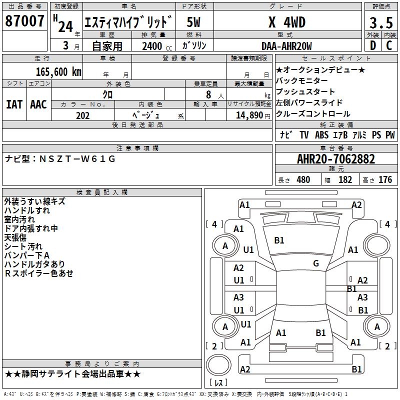 TOYOTA ESTIMA HYBRID X 4WD - лот 87007