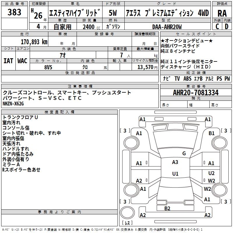 TOYOTA ESTIMA HYBRID AERAS PREMIUM EDI SI4WD - лот 383