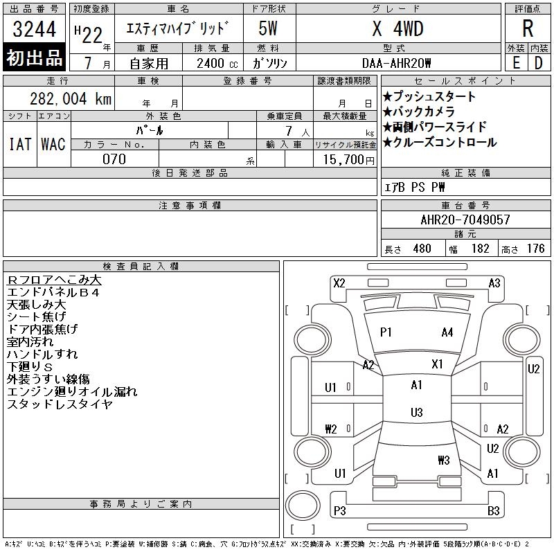 TOYOTA ESTIMA HYBRID X 4WD - лот 3244