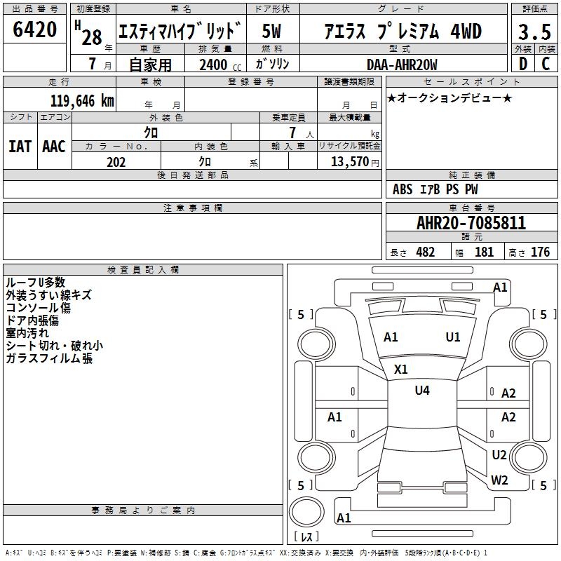 TOYOTA ESTIMA HYBRID AERAS PREMIUM 4WD - лот 6420