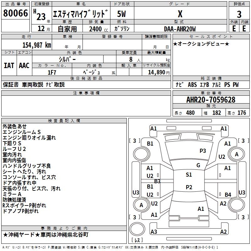 TOYOTA ESTIMA HYBRID X - лот 80066