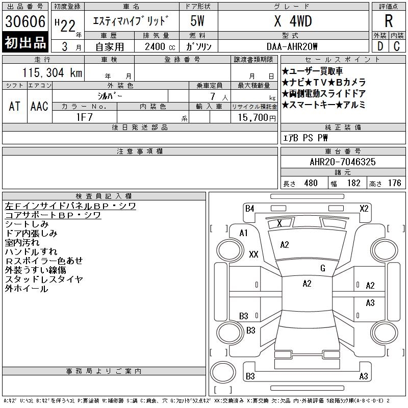TOYOTA ESTIMA HYBRID X 4WD - лот 30606