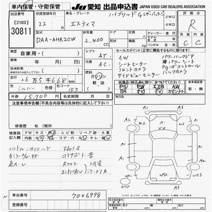 TOYOTA ESTIMA HYBRID G LEATHER PACKAGE - лот 30811