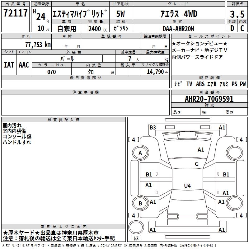 Все аукционы TOYOTA ESTIMA HYBRID