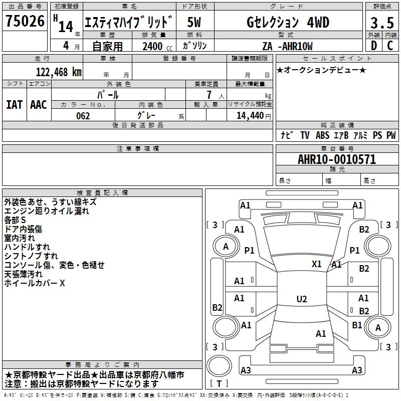 TOYOTA ESTIMA HYBRID G SELECTION 4WD - лот 75026