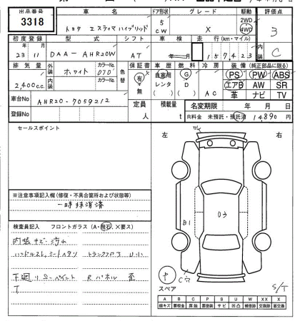 TOYOTA ESTIMA HYBRID 4WD X - лот 3318