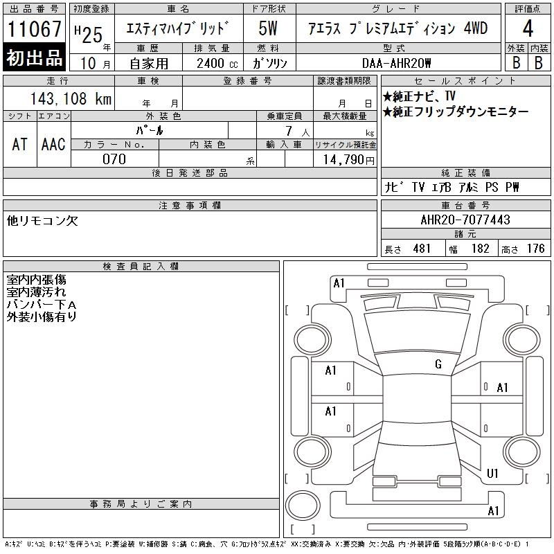 TOYOTA ESTIMA HYBRID AERAS PREMIUM EDI SI4WD - лот 11067