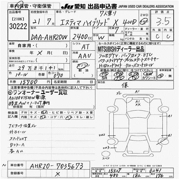 TOYOTA ESTIMA HYBRID X 4WD - лот 30222