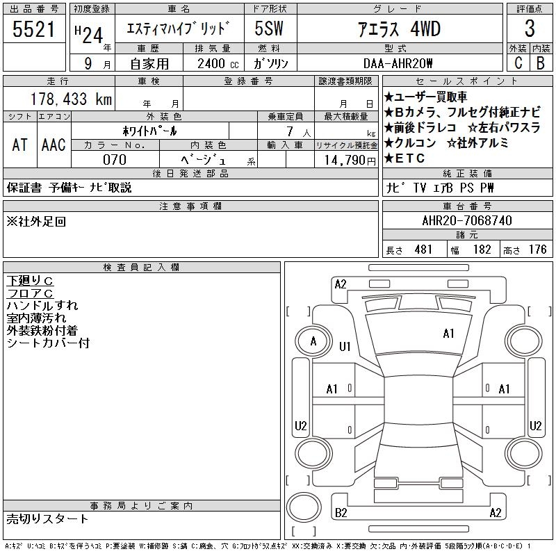 Все аукционы TOYOTA ESTIMA HYBRID