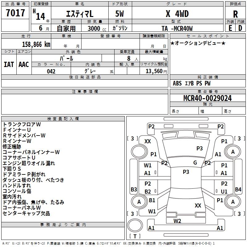 TOYOTA ESTIMA L X 4WD - лот 7017