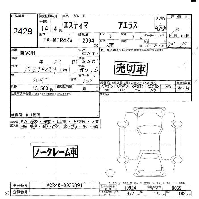 TOYOTA ESTIMA L 4WD AERAS - лот 2429