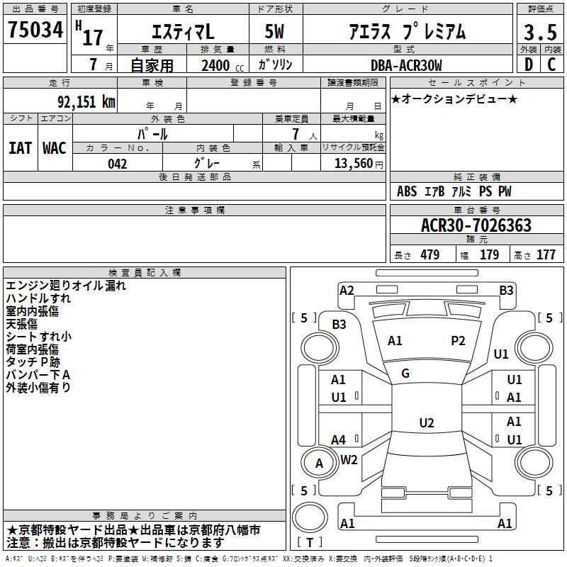TOYOTA ESTIMA L AERAS PREMIUM - лот 75034