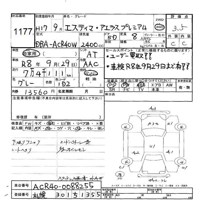 TOYOTA ESTIMA L - лот 1177