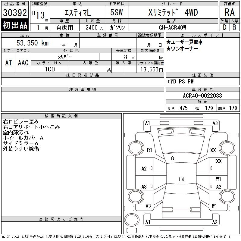 TOYOTA ESTIMA L - лот 30392