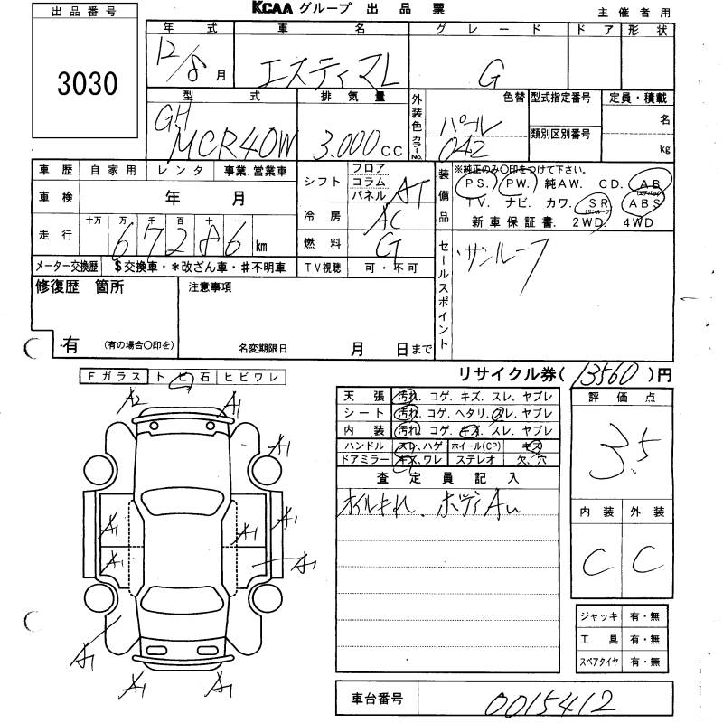 TOYOTA ESTIMA L G - лот 3030