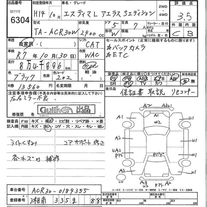 TOYOTA ESTIMA L AERAS S EDITION - лот 6304