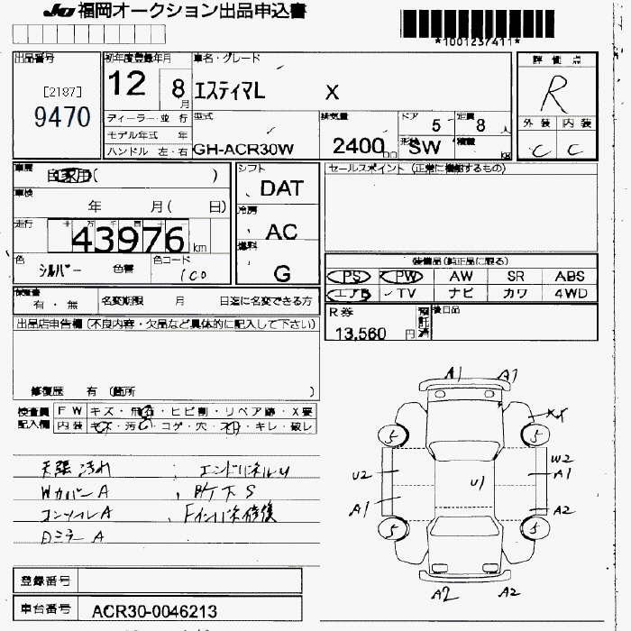 TOYOTA ESTIMA L X - лот 9470