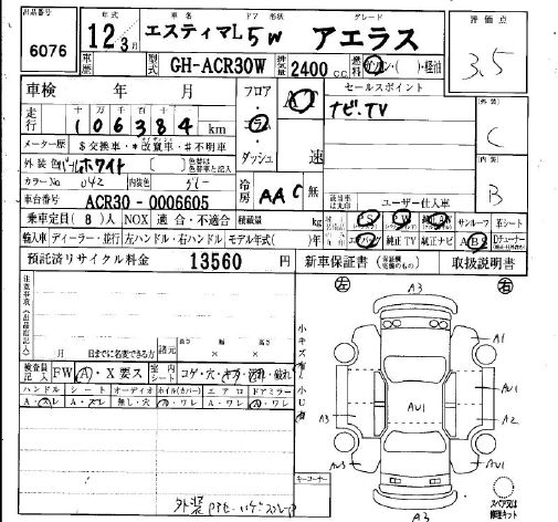 TOYOTA ESTIMA L AERAS - лот 6076