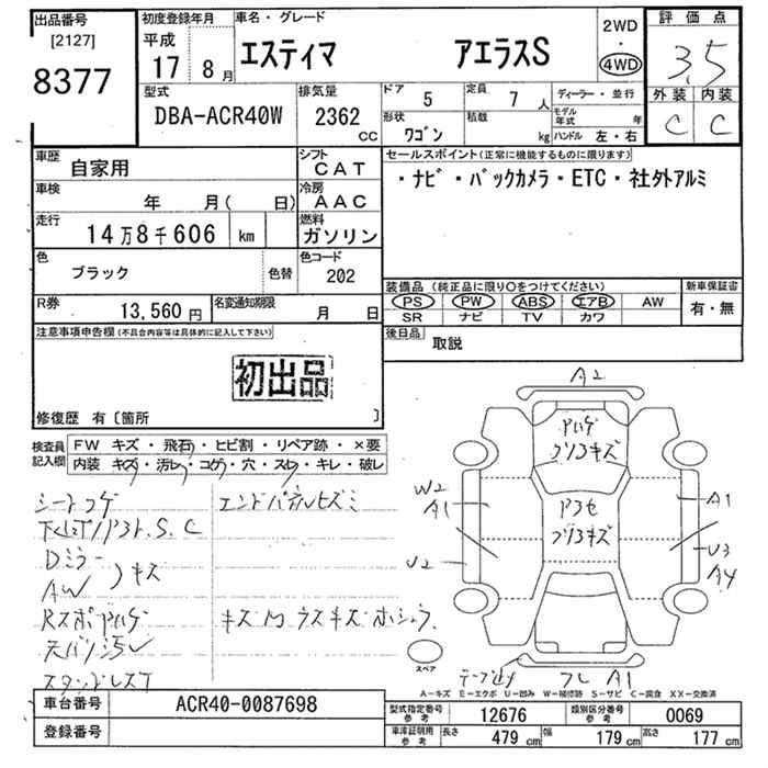 TOYOTA ESTIMA L 4WD AERAS S - лот 8377
