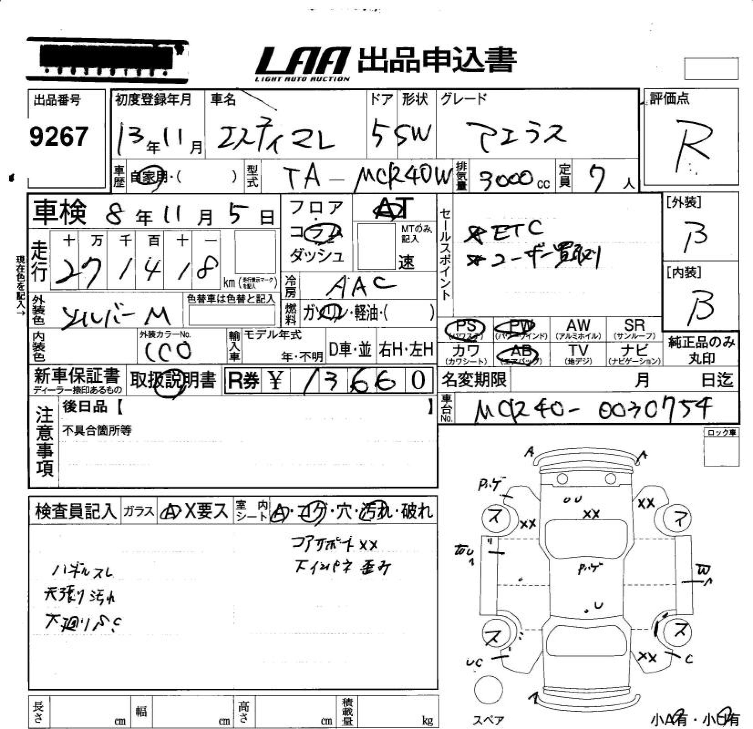 TOYOTA ESTIMA L AERAS - лот 9267