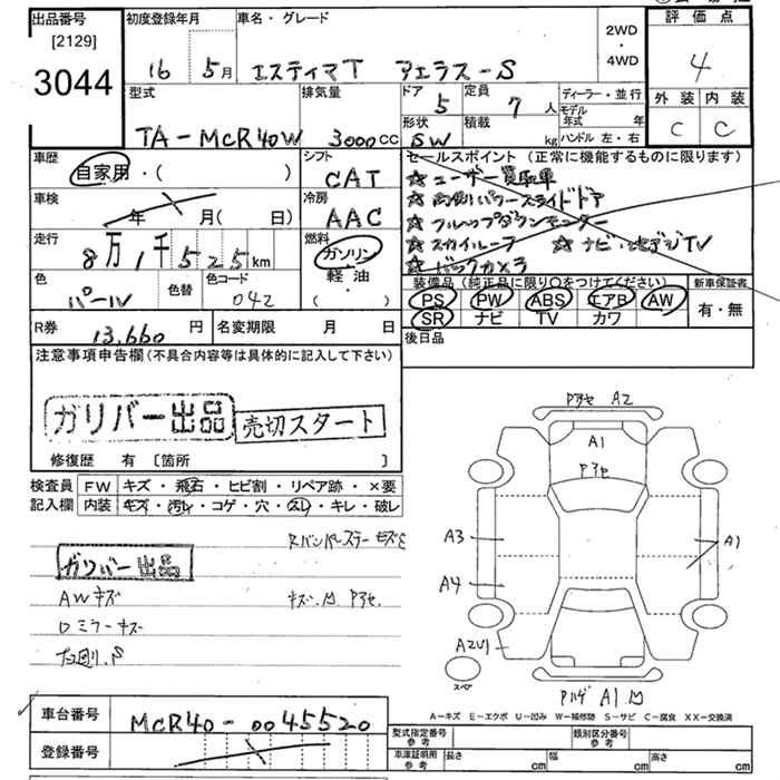 TOYOTA ESTIMA L AERAS S - лот 3044