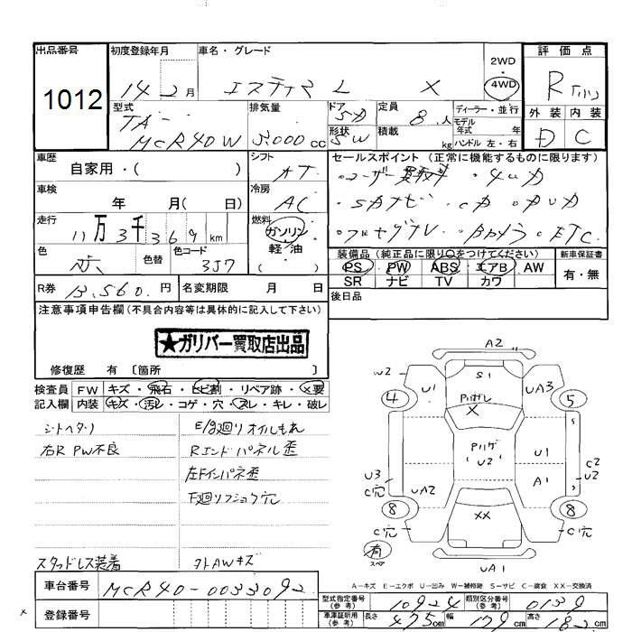 TOYOTA ESTIMA L 4WD X - лот 1012
